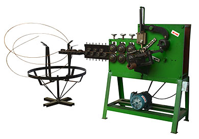 打圈機廣泛適用于鋼絲、鐵線、不銹鋼絲等各種金屬線材(圓、扁、方、六角型等)的卷圓、半圓或任意角度(同心)圓弧,配以專用的模具及可調壓輪還可制作圓形非圓形截面的線材、板材只需更換調線輪,送線輪,壓線輪及切刀即可加工。是鋼筋凳、水泥電桿、環保除塵骨架、風扇網罩、小太陽電暖器、風機防護罩、電燈罩、鳥籠、工藝品、花盆架、箱包扣件、日用五金廚具(如爐架、酒/杯架)、衛浴掛架、桶箍、方向盤、汽車配件、蘋果筐水果筐等行業提高產品質量、降低生產成本、提升生產能力的設備。